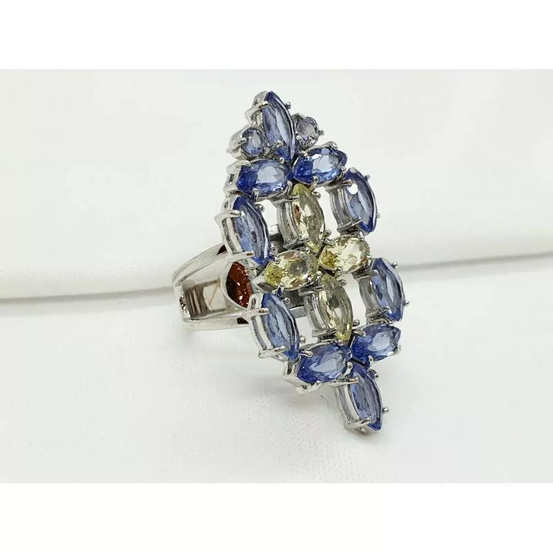 Anel Sororidade em joia folheada, com banho ródio branco e cristas Tanzanita, Citrino Limão