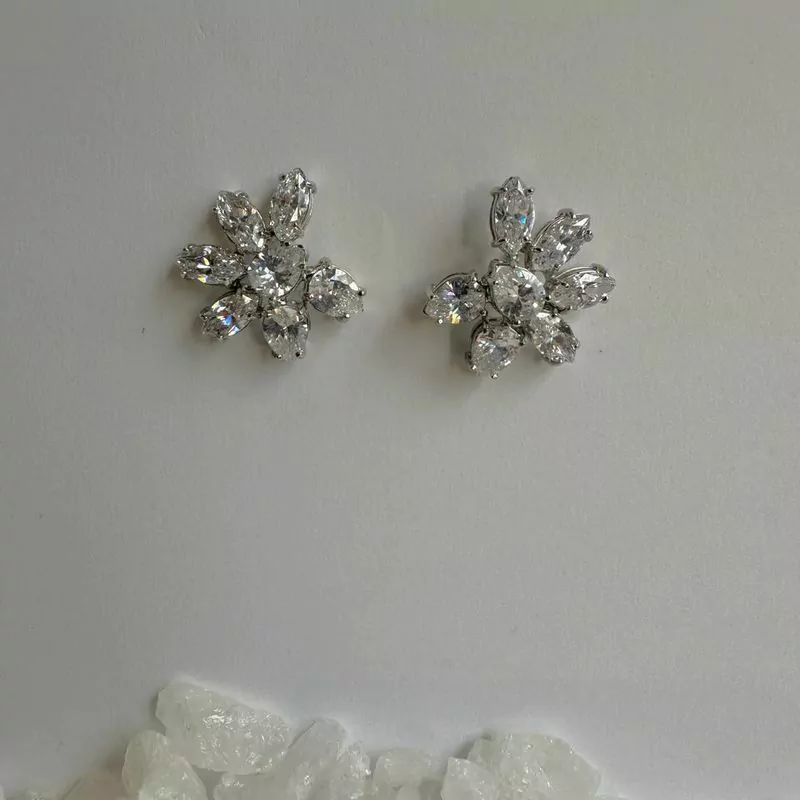 Brinco Laila joia folheada, com banho de ouro branco 18k, e Zircônias
